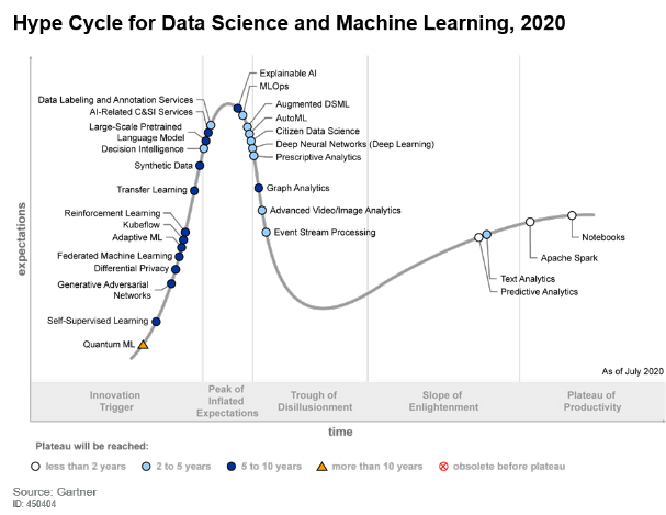 1 Gartner,, “Hype Cycle for Data Science and Machine Learning, 2020”, Shubhangi Vashisth, Alexander Linden, Jim Hare, Pieter den Hamer ,July 28, 2020.